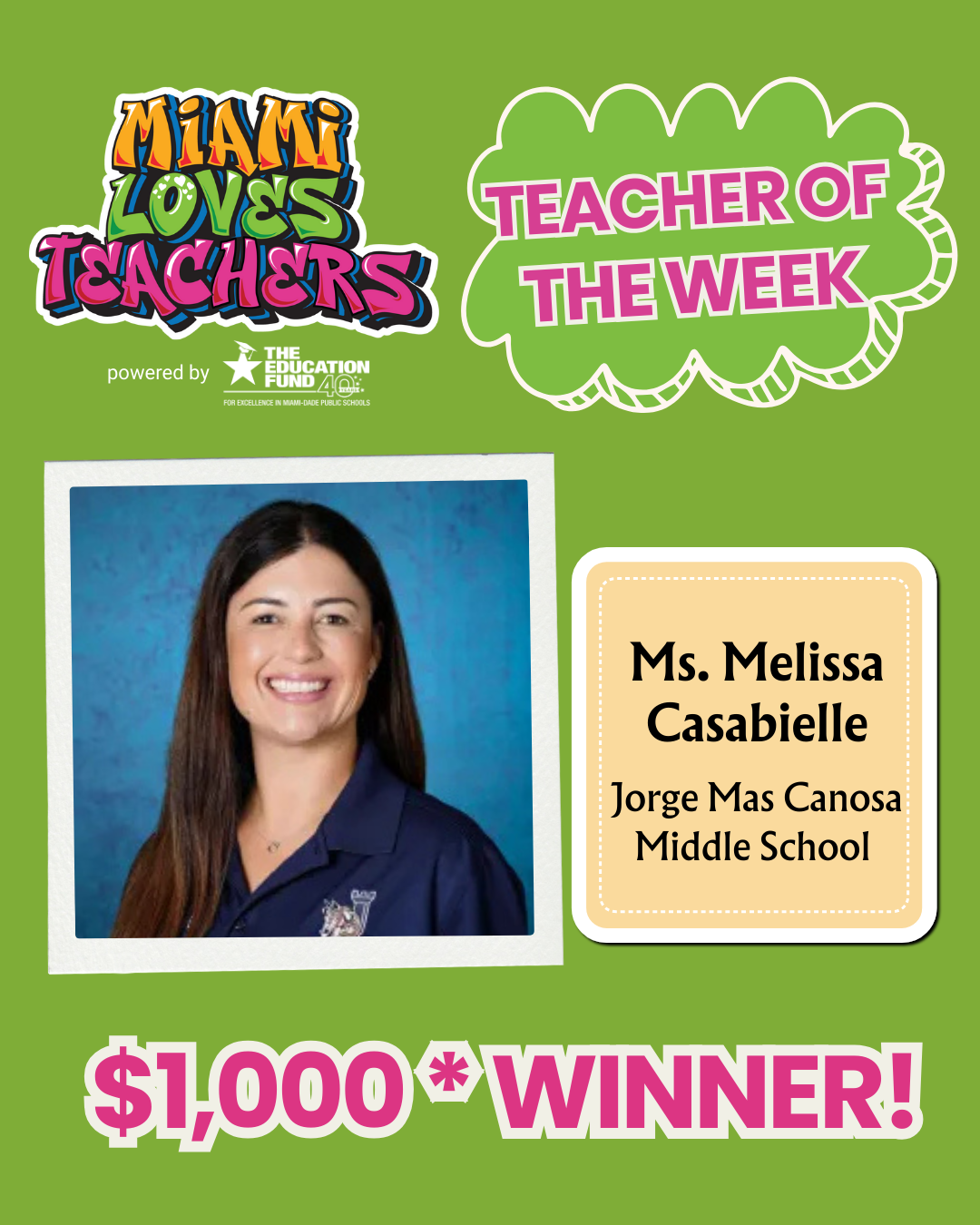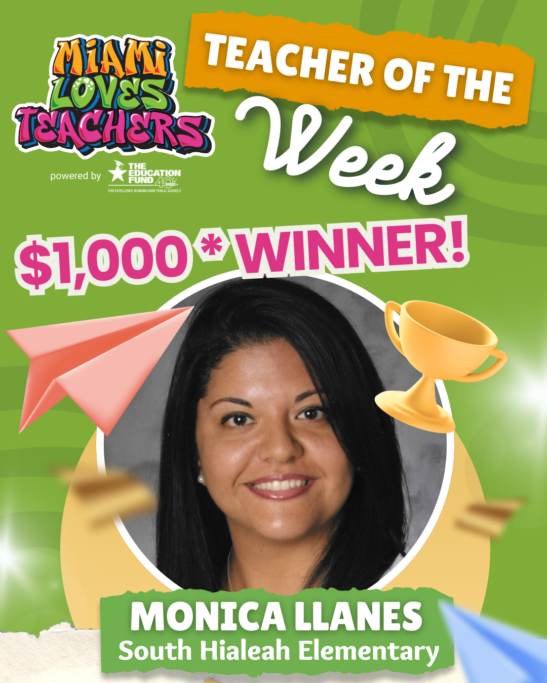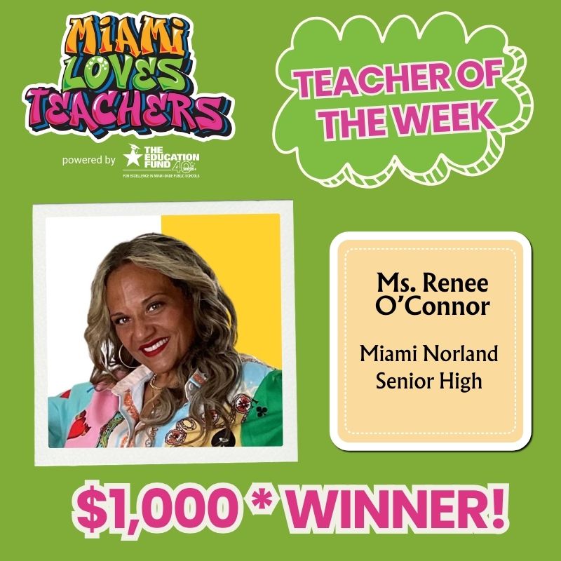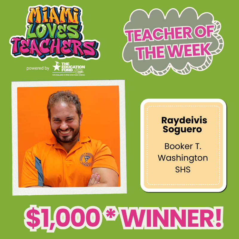 The Teacher of the Week contest is conducted and administered solely by the College Football Playoff Foundation, one of the founding partners of Miami Loves Teachers. The Education Fund is proud to share this wonderful opportunity, but is not responsible for the conduct, administration, or fulfillment of prizes.