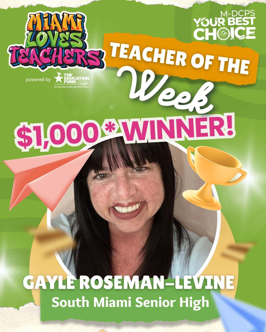 In education, our teachers and school leaders are true game changers who deserve to be celebrated. Whether you’re a fellow educator, parent, current student, or former student, we want to hear your stories about Miami-Dade County Public Schools’ teachers who have made a difference in your life or your child’s education.